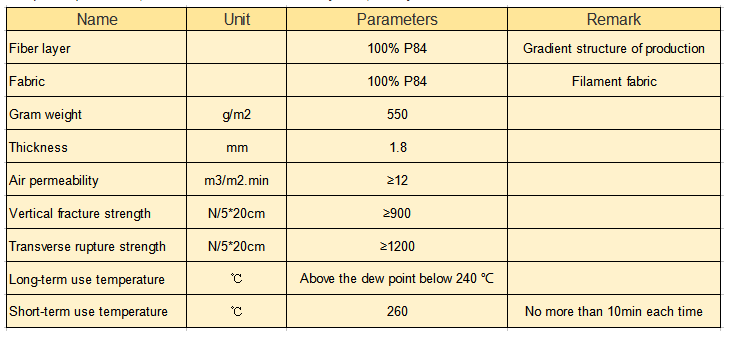 1. The P84 fiber itself has an ultra-thin diameter, excellent high temperature resistance, irregular cross-section of the fiber, due to which the surface of the fiber is maximized provides many tiny pores, so that the low resistance P84 dust filter bag good dust removal efficiency.