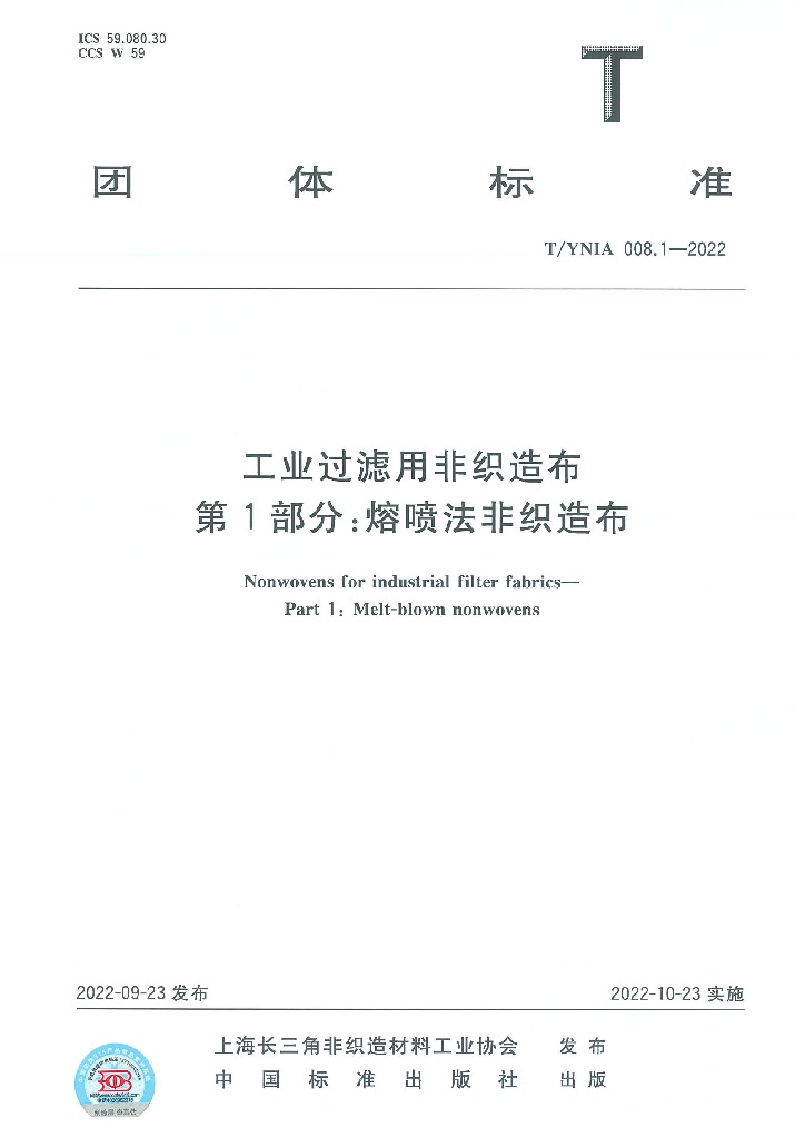 2022年9月23日,T/YNIA 008.1-2022《工業(yè)過濾用非織造布 第一部分 熔噴法非織造布》由上海長三角非織造材料工業(yè)協(xié)會(huì)權(quán)威發(fā)布,并于2022年10月23日起實(shí)施。山東奧博環(huán)??萍加邢薰緸橹饕瓿蓡挝?/span>。