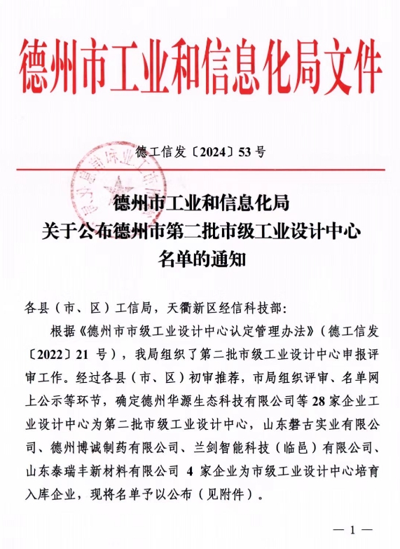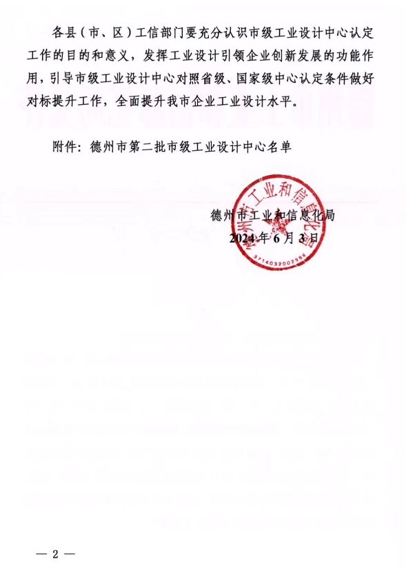 近日,德州市工業(yè)和信息化局公布德州市市級工業(yè)設(shè)計中心的企業(yè)名單,我司申報的工業(yè)設(shè)計中心【山東奧博環(huán)??萍加邢薰竟I(yè)設(shè)計中心】成功入選!