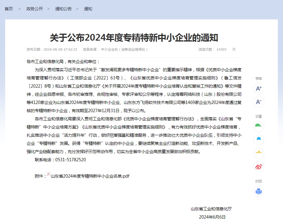 山東省工業(yè)和信息化廳近期公布2024年度山東省專精特新中小企業(yè)名單,我司順利通過本次復(fù)審工作,再次獲得專精特新中小企業(yè)的殊榮。
